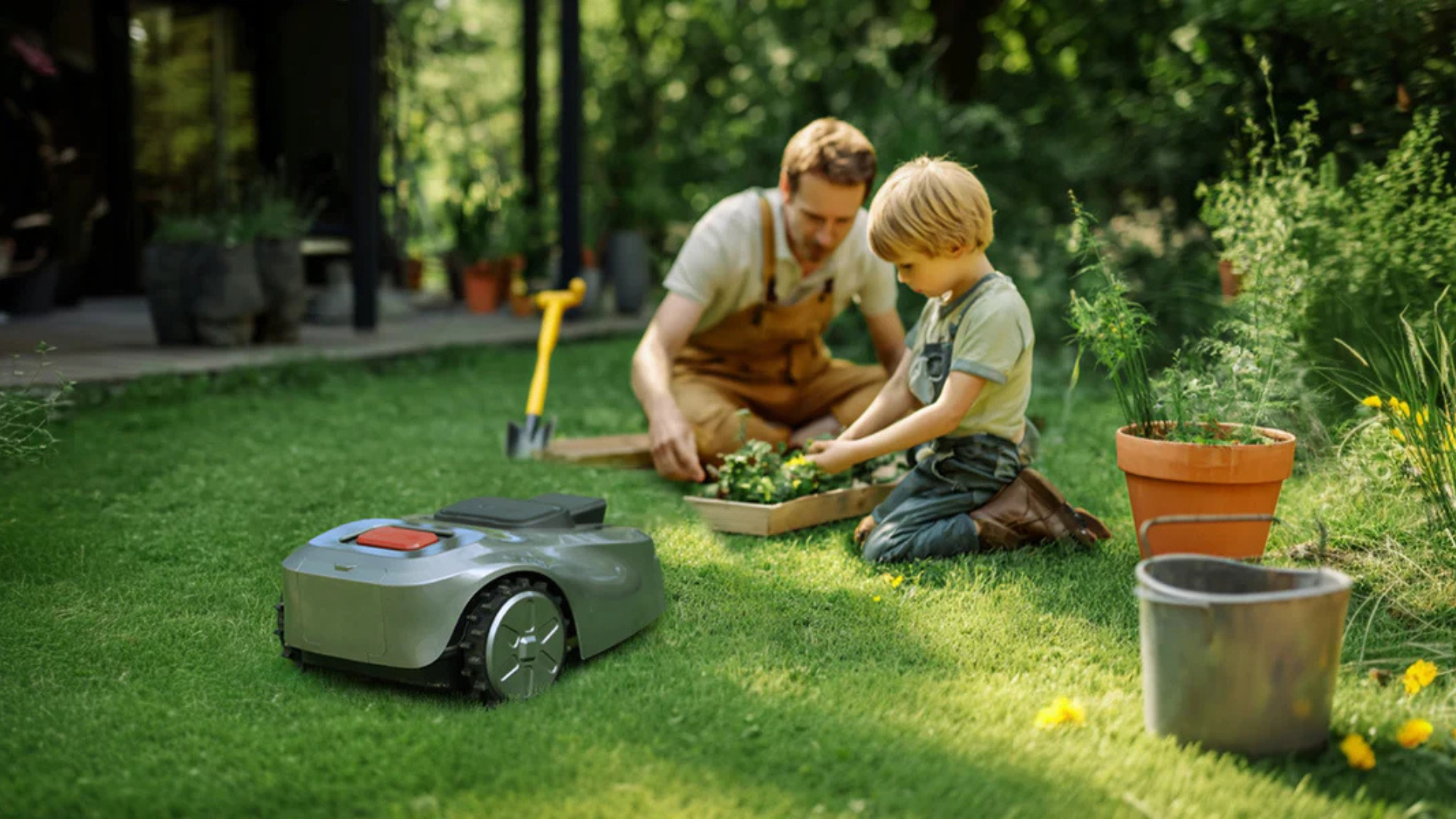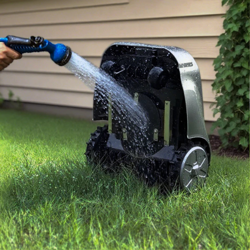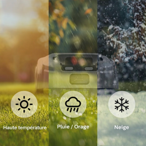 La GS est équipée d'un capteur de pluie et s'arrête automatiquement en cas de mauvais temps pour rejoindre sa station de recharge.