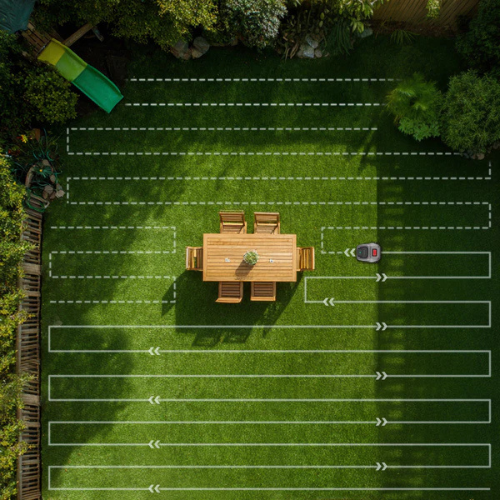 Optez pour différents modes, comme les bandes parallèles, afin d'optimiser les performances de tonte selon vos préférences.
